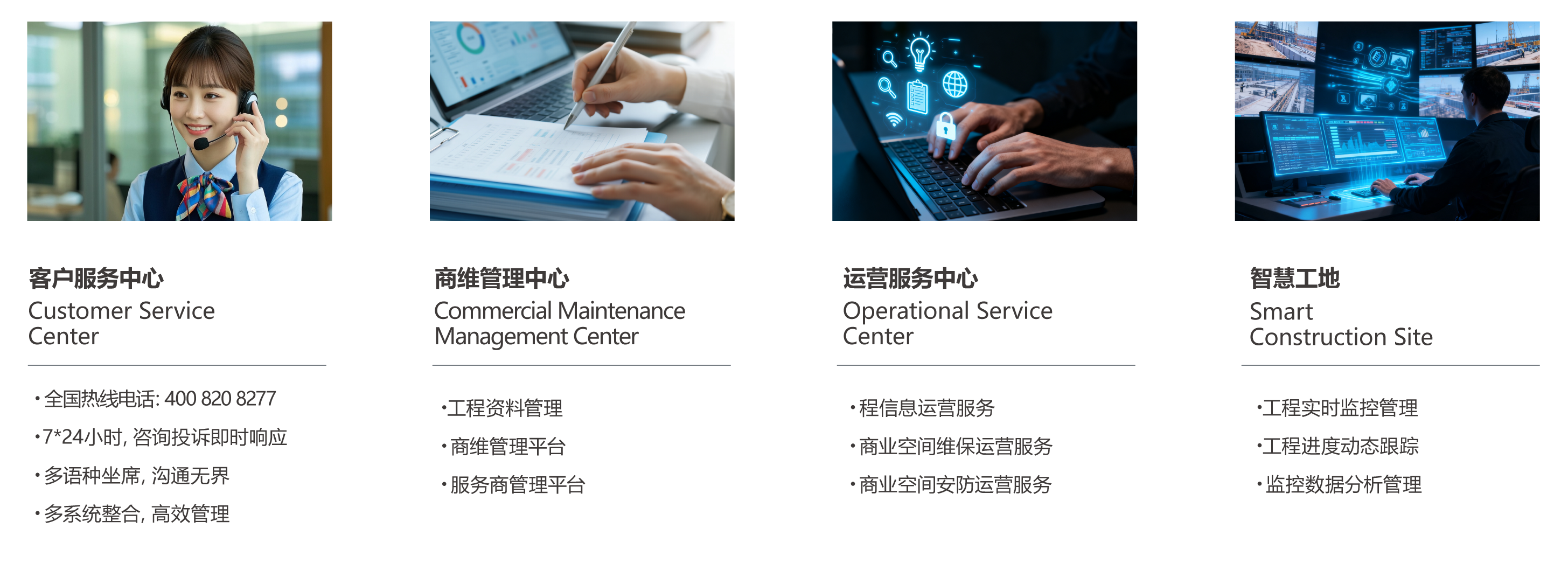 公司自有 STARSEVICE 商维综合管理平台,为商业空间的工程实施到售后回访、维护保养提供了全链路管理。服务覆盖全球50多个城市,2500+零售店铺。